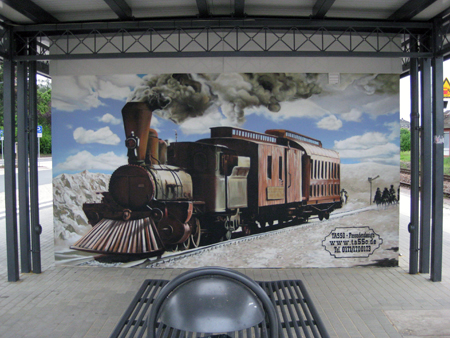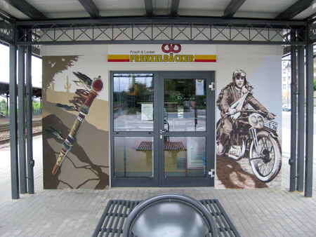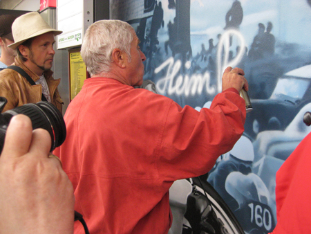 Außerdem war die Rennsportlegende Heinz Rosner anwesend, welcher unter der Anleitung von TASSO sein Bild mit Spraydose signierte.